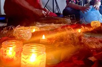 "Eind november nam ik voor het eerst deel aan een relaxatie-avond. We werkten rond het thema water, het element dat ze koppelen aan de herfst. Eerst was er soep met boterhammen, dat was al een gezellig begin. Daarna gingen we naar de grote werkruimte voor de relaxatie zelf. Na een openingsronde waarin we met de grootste aandacht water konden bekijken, voelen, proeven, ruiken, en even vertellen wat water voor ons betekent, warmden we ons lichaam op met een bewegingsoefening waarbij we met glinsterende gouden doeken door de ruimte bewogen; bijna alsof we echt in het water waren. Daarna schilderden we met zachte penselen en water op elkaars handen, terwijl passende muziek klonk. Dit was een heerlijke ervaring, zo eenvoudig en heel ontspannend. Tenslotte speelden we met speciaal uitgekozen muziekinstrumenten voor elkaar - ook al moest je geen muzikale ervaring hebben. De zachte muziek rondom mij was erg rustgevend en ik kon de controle even helemaal loslaten, ik had dit nog nooit eerder ervaren. Het was een aangename en heel veilig opgebouwde avond."