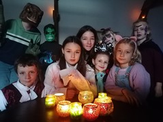 In het weekend van Halloween is er jaarlijks onze Halloweenrepetitie. Dan kunnen we even als heksen en spoken de repetitie onveilig maken en zingen we griezelige liedjes in het donker. Nou ja, voor zover het nog vriendelijk is voor onze jongste zangertjes! Gezellig was het wel!